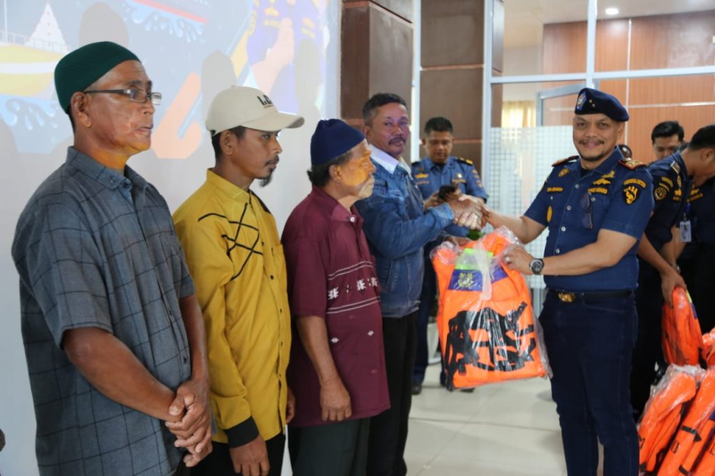 Adapun dalam penyerahan life jacket tersebut diberikan secara simbolis oleh Direktur KPLP, Jon Kenedi beserta Kepala KSOP Kelas I Dumai, Capt. Diaz Saputra kepada 7 (tujuh) orang awak kapal yang berasal dari kapal pelra pengangkut buah dan perahu service boat.