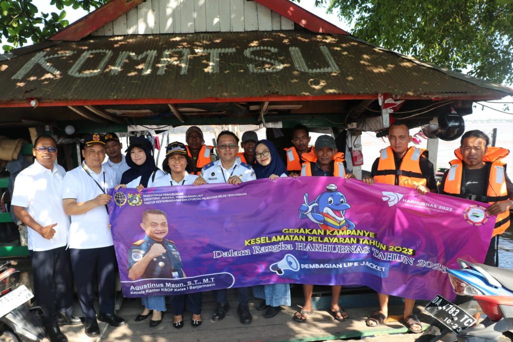 Banjarmasin, (DelikAsia.com) | Direktorat Jenderal Perhubungan Laut Kementerian Perhubungan melalui Kantor Kesyahbandaran dan Otoritas Pelabuhan (KSOP) Kelas I Banjarmasin melaksanakan Kampanye Keselamatan Pelayaran dengan memberikan bantuan alat keselamatan kapal secara gratis berupa life jacket kepada awak kapal tradisional di wilayah kerja KSOP Banjarmasin pada Senin (25/9).
