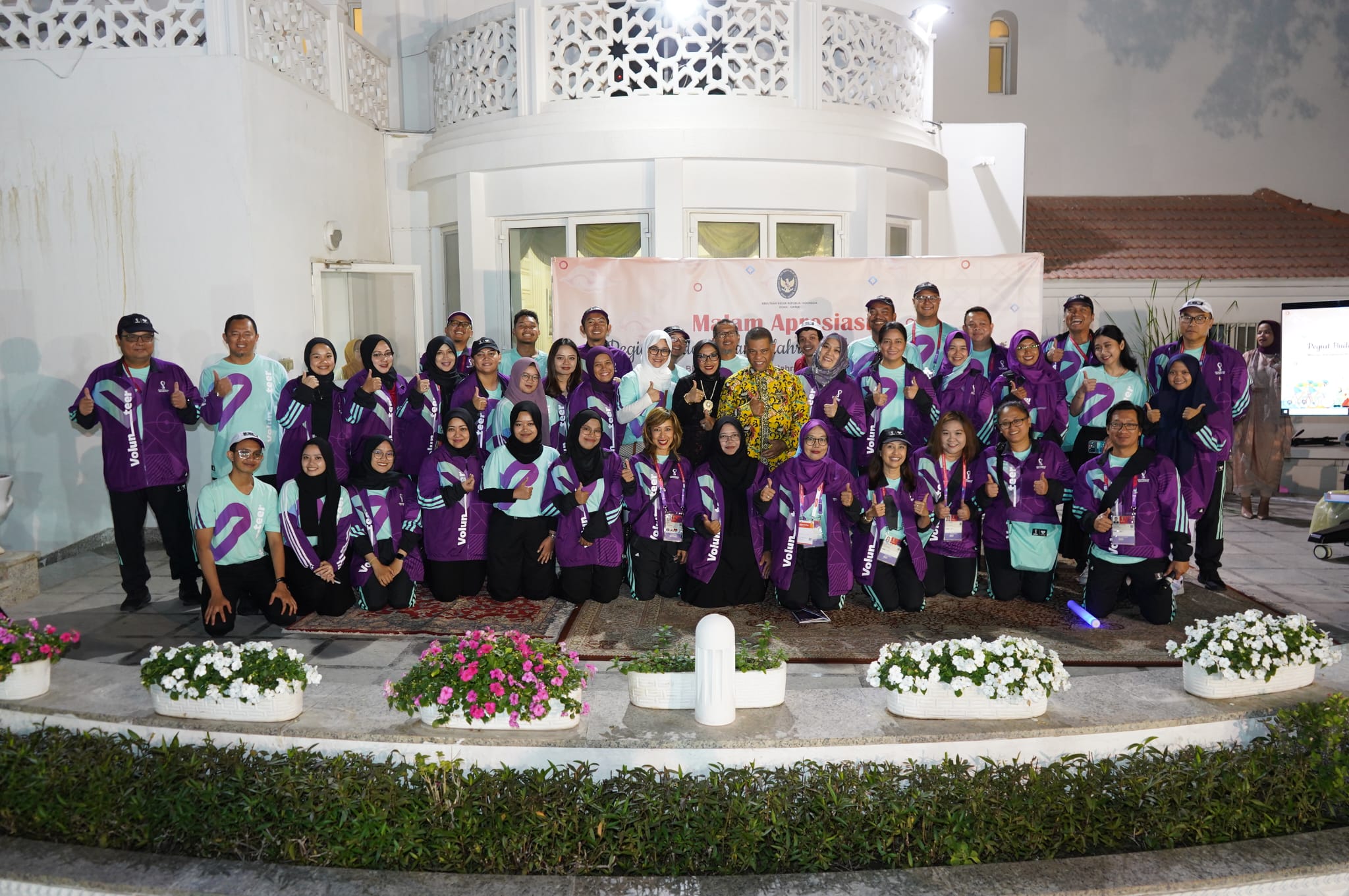 DelikAsia.com, (Doha-Qatar),–KBRI Doha menggelar malam apresiasi bagi para volunteer Indonesia yang terlibat dalam FIFA World Cup 2022. Kegiatan diselenggarakan di Wisma Duta, Jalan Istiqlal, Doha pada (23/12). Duta Besar RI untuk Qatar, Ridwan Hassan menyampaikan apresiasinya kepada para volunteer Indonesia di World Cup 2022. “Bagaimanapun juga mereka adalah duta bangsa yang berdiri langsung berhadapan dengan supporter dari banyak negara,” ujar Dubes Ridwan Hassan.
