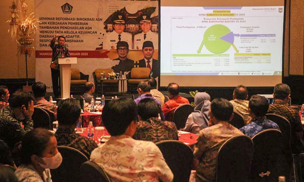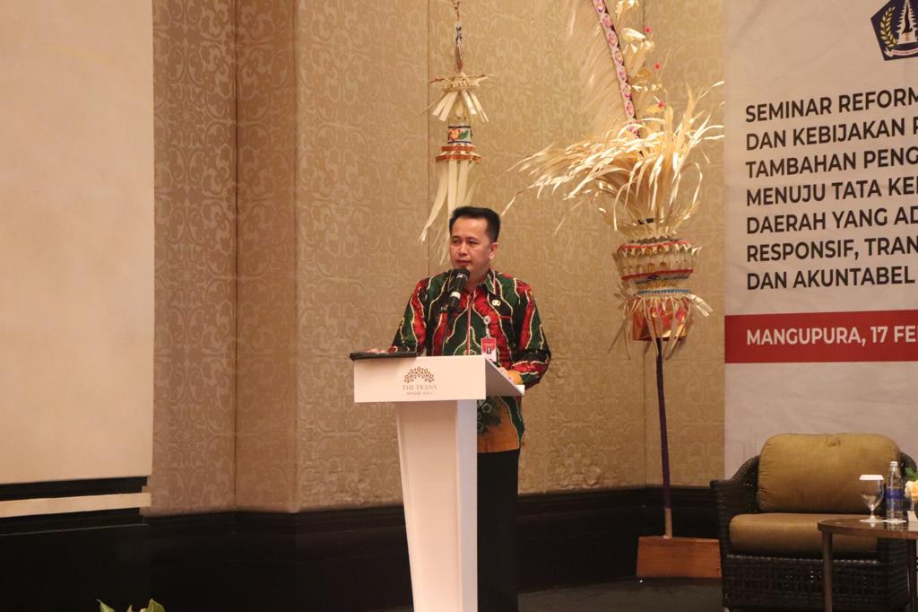 Dokumentasi: Agus Fatoni (Dirjen) Bina Keuangan Daerah Kemendagri Agus, saat melakukan monitoring, evaluasi, dan asistensi realisasi APBD di Kabupaten Badung Provinsi Bali.[Sumber: Puspen Kemendagri]. Badung, (DelikAsia.com) | Kementerian Dalam Negeri (Kemendagri) membeberkan sejumlah faktor pentingnya realisasi Anggaran Pendapatan dan Belanja Daerah (APBD) dilakukan sejak awal tahun. Hal ini diungkapkan oleh Direktur Jenderal (Dirjen) Bina Keuangan Daerah (Keuda) Kemendagri Agus Fatoni saat melakukan monitoring, evaluasi, dan asistensi realisasi APBD di Kabupaten Badung Provinsi Bali, sekaligus menjadi keynote speaker pada seminar bertajuk “Reformasi Birokrasi ASN dan Kebijakan Pemberian Tambahan Penghasilan ASN Menuju Tata Kelola Keuangan Daerah yang Adaptif, Responsif, Transparan dan akuntabel” di The Trans Resort Bali, Badung, Bali, Jumat (17/2/2023).