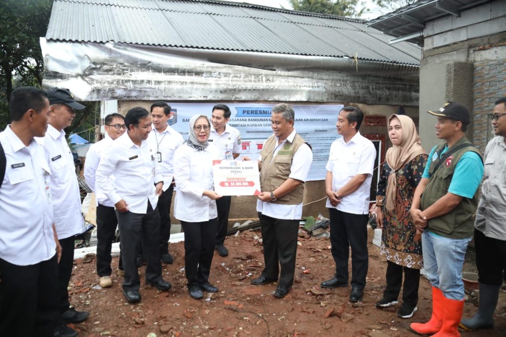 Kemendagri bersama BNPP menyerahkan bantuan dana untuk masyarakat terdampak bencana gempa di Desa Benjot, Kecamatan Cugenang, Kabupaten Cianjur,[Sumber: Puspen Kemendagri]. DelikNesia.com, (Cianjur),–Kementerian Dalam Negeri (Kemendagri) dan Badan Nasional Pengelola Perbatasan (BNPP) menyerahkan bantuan dana untuk masyarakat terdampak bencana gempa di Desa Benjot, Kecamatan Cugenang, Kabupaten Cianjur, Rabu (28/12/2022).