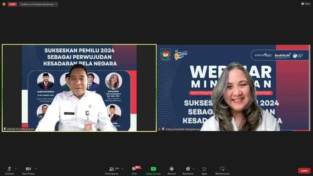 Jakarta, (DelikAsia.com) | Kementerian Dalam Negeri (Kemendagri) melalui Direktorat Jenderal (Ditjen) Politik dan Pemerintahan Umum (Polpum) berkomitmen dalam menyukseskan Pemilu 2024 sebagai perwujudan kesadaran bela negara. Komitmen tersebut diwujudkan, salah satunya melalui gelaran Webinar Mingguan Serial Dialog Pemilu 2024 Ditjen Polpum, Rabu (5/4/2023).