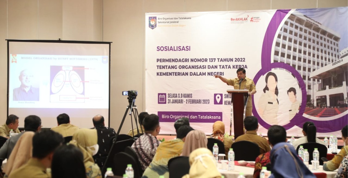 Jakarta, (DelikAsia.com) | Kementerian Dalam Negeri (Kemendagri), melalui Biro Organisasi dan Tata Laksana (Ortala) menggelar Sosialisasi Peraturan Menteri Dalam Negeri (Permendagri) Nomor 137 Tahun 2022 tentang Organisasi dan Tata Kerja Kemendagri di Hotel Swiss-Belinn, Kemayoran, Jakarta, Selasa (31/1/2023). Acara tersebut dibuka secara langsung oleh Sekretaris Jenderal (Sekjen) Kemendagri Suhajar Diantoro dan dihadiri sejumlah pejabat pimpinan tinggi pratama (eselon II) Kemendagri, serta beberapa pejabat lainnya.