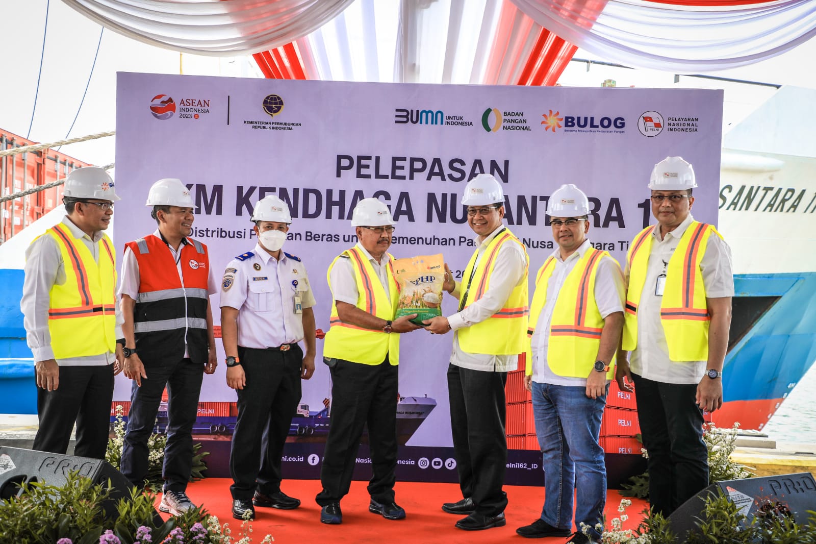 Pada kesempatan yang sama, Kasubdit Angkutan Laut Khusus dan Jasa Usaha Terkait Mohd. Arief Agustian menjelaskan sebanyak kurang lebih 1.400 Ton beras diangkut dan didistribusikan ke Provinsi Nusa Tenggara Timur menggunakan 2 (dua) unit kapal Tol Laut yaitu KM. Kendhaga Nusantara 5 yang dioperasikan oleh PT. Pelayaran Pelangi Tunggal Ika dan KM. Kendhaga Nusantara 11 yang dioperasikan oleh PT. PELNI (Persero).