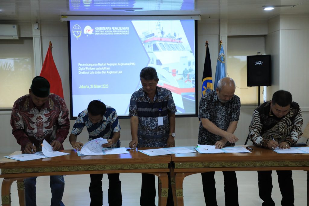 Hal ini disampaikan oleh Plh Direktur Jenderal Perhubungan Laut Capt. Antoni Arif Priadi saat menyaksikan acara penandatanganan naskah perjanjian kerjasama digital platform pada aplikasi Direktorat Lalu Lintas dan Angkutan Laut, di Ruang Sriwijaya Kantor Pusat Kemenhub, Jakarta, Selasa (28/3).