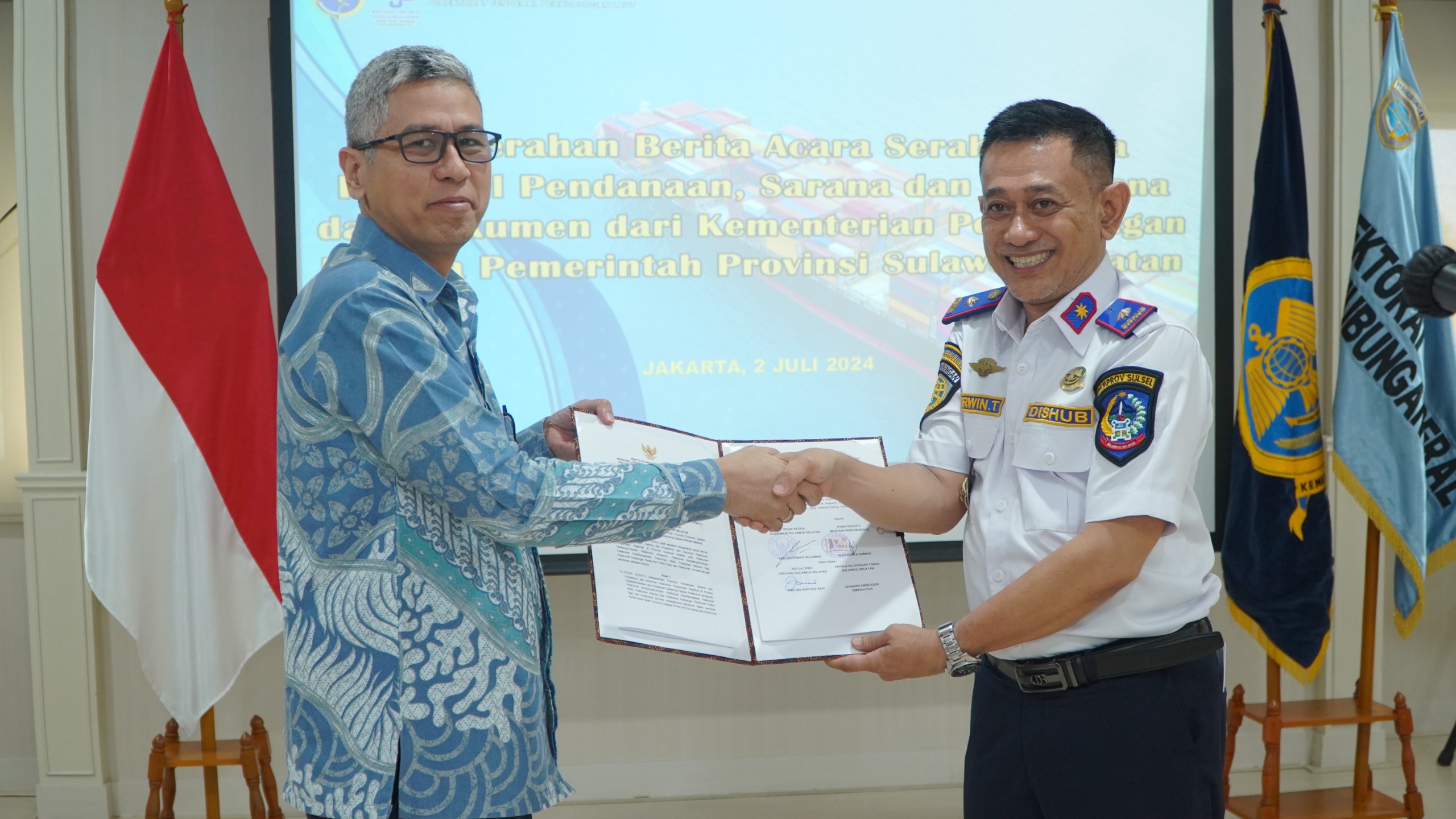DelikAsia.com, (Jakarta) | Kementerian Perhubungan dalam hal ini Direktorat Jenderal Perhubungan Laut melalui Bagian Umum dan Perlengkapan telah melaksanakan penyerahan Berita Acara Serah Terima (BAST) Personel, Pendanaan, Sarana dan Prasarana, dan Dokumen (P3D) Pelabuhan Pengumpan Regional di Provinsi Sulawesi Selatan dari Kementerian Perhubungan kepada Pemerintah Provinsi Sulawesi Selatan.