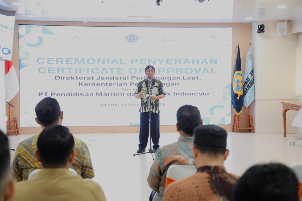 DelikAsia.com, (Jakarta) | Kementerian Perhubungan melalui Direktorat Jenderal Perhubungan Laut menyerahkan Sertifikat Pengesahan (Certificate of Approval/COA) kepada PT Pendidikan Maritim dan Logistik Indonesia (PMLI). Acara serah terima berlangsung di Ruang Sriwijaya, Kantor Pusat Kementerian Perhubungan, Selasa (24/12), dengan sertifikat diserahkan langsung oleh Direktur Kepelabuhanan, Masyhud, kepada Direktur Utama PT PMLI, Sumarno.