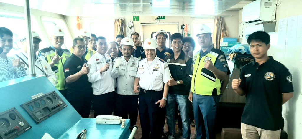 Kepala Sub Direktorat Pengukuran, Pendafataran dan Kebangsaan Kapal, Direktorat Perkapalan dan Kepelautan, Hendri Amir, memimpin langsung pelaksanaan uji Kelaiklautan Kapal Penumpang kali ini.