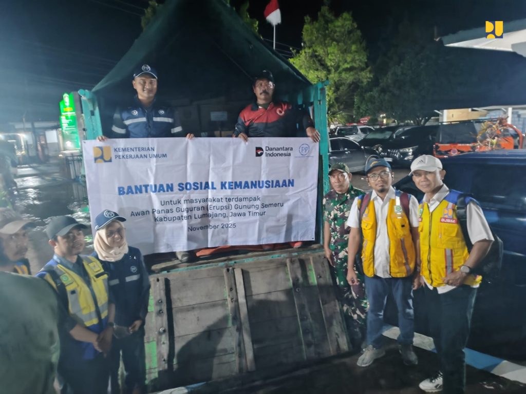 Jakarta, (Delik Asia) | Kementerian Pekerjaan Umum (PU) menyalurkan Bantuan Sosial (Bansos) untuk memenuhi kebutuhan dasar masyarakat terdampak erupsi Gunung Semeru di wilayah Kabupaten Lumajang–Malang. Penyaluran dilakukan secara simbolis oleh Balai Besar Pelaksanaan Jalan Nasional (BBPJN) Jawa Timur–Bali di posko pengungsian Kantor Kecamatan Pronojiwo, Kabupaten Malang, Senin (24/11/2025).