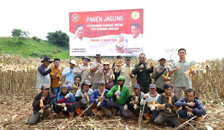DelikAsia.com, (Cianjur-Jawa Barat) | Asisten Khusus Menhan Bidang Ketahanan Pangan, Letjen TNI (Purn) Ida Bagus Purwalaksana, mewakili Menteri Pertahanan RI Prabowo Subianto, menghadiri panen raya jagung di lahan food estate Desa Mulyasari, Kecamatan Mande, Kabupaten Cianjur, Jawa Barat, Kamis (14/3). Lahan yang ditanami sekitar 54 hektare ini adalah hasil kerja sama Kementerian Pertahanan dengan Kementerian Pertanian.