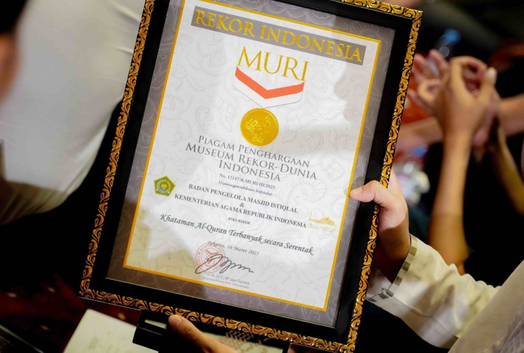 DelikAsia.com, (Jakarta) | Kementerian Komunikasi dan Digital (Kemkomdigi), bersama Masjid Istiqlal dan Kementerian Agama (Kemenag), berhasil menggelar program “Indonesia Khataman Al-Qur’an” yang mencatatkan rekor MURI dengan 352.057 khataman dalam satu hari. Acara ini berlangsung pada 16 Maret 2025, bertepatan dengan 16 Ramadhan 1446 H, dalam rangka memperingati Nuzulul Quran.