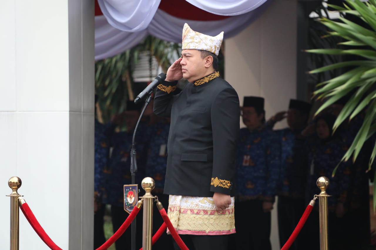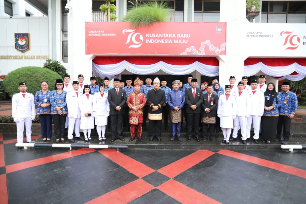 DelikAsia.com, (Jakarta) | Pelaksana Tugas (Plt.) Sekretaris Jenderal (Sekjen) Kementerian Dalam Negeri (Kemendagri) Tomsi Tohir memimpin upacara peringatan Hari Ulang Tahun (HUT) ke-79 Kemerdekaan Republik Indonesia (RI) di Lingkungan Kemendagri dan Badan Nasional Pengelola Perbatasan (BNPP), Sabtu (17/8/2024).