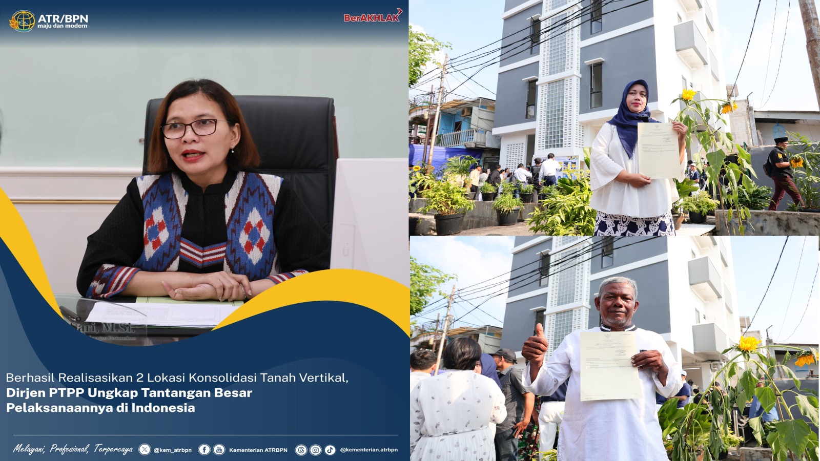 DelikAsia.com, (Jakarta) |Kementerian Agraria dan Tata Ruang/Badan Pertanahan Nasional (ATR/BPN) berhasil melaksanakan program Konsolidasi Tanah Vertikal (KTV) yang menata ulang permukiman kumuh menjadi hunian vertikal layak huni tanpa memindahkan warga. Hingga kini, dua KTV telah direalisasikan di Palmerah, Jakarta Barat, dan Tanah Tinggi, Jakarta Pusat.