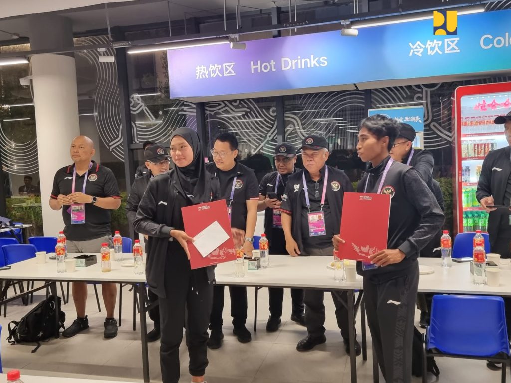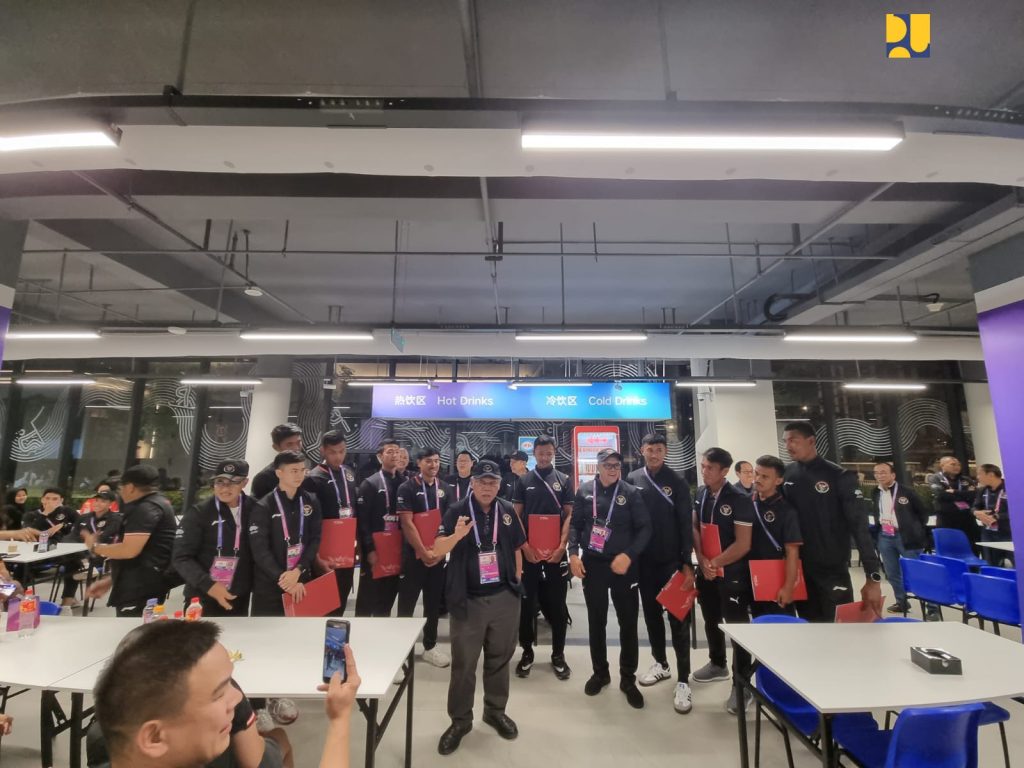 Jakarta, (DelikAsia.com) | Menteri Pekerjaan Umum dan Perumahan Rakyat (PUPR) Basuki Hadimuljono selaku Chef de Mission (CdM)/Ketua Kontingen Asian Games 2023 memberikan semangat secara langsung kepada para atlet yang bertanding dalam ajang Asian Games ke-19 Hangzhou 2022 Tahun 2023, di Athletes Village, Hangzhou, Minggu (24/9/2023).
