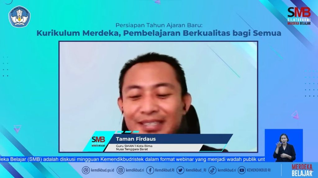 Pada kesempatan yang sama, Guru SMAN 1 Kota Bima, Nusa Tenggara Barat, Taman Firdaus yang telah menerapkan Kurikulum Merdeka di sekolahnya sejak tahun lalu mengungkapkan bahwa pembelajaran di sekolah kini terasa lebih bermakna. “Dengan penerapan Kurikulum Merdeka, guru menjadi lebih leluasa untuk merencanakan pembelajaran yang bermakna pada murid,” ungkapnya.