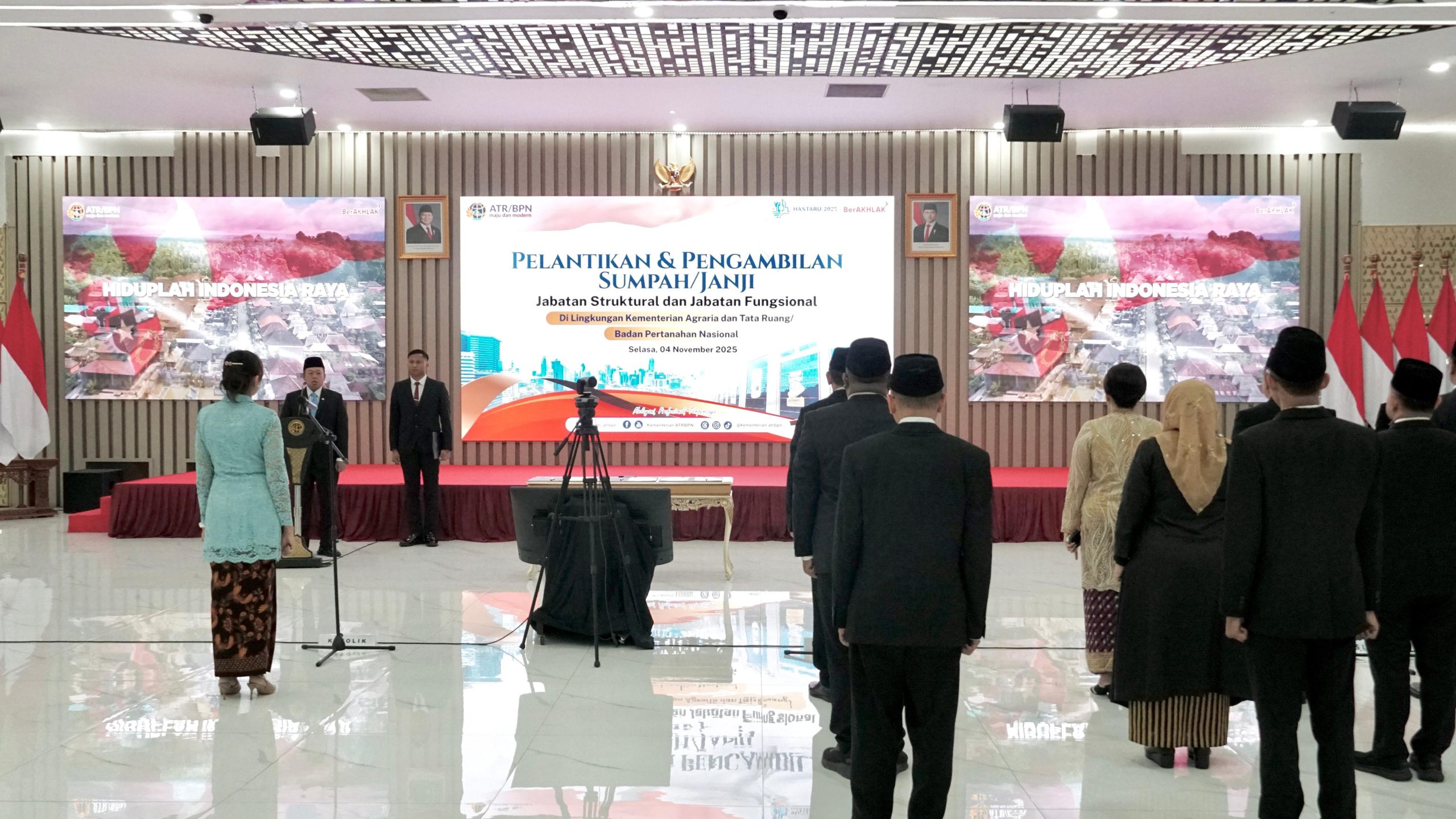 Pelantikan ini jadi momentum bagi seluruh pejabat di lingkungan Kementerian ATR/BPN untuk memperkuat komitmen dalam menjalankan tugas dengan penuh integritas dan profesionalisme. Pelantikan berlangsung secara daring dan luring dengan dihadiri oleh sejumlah Pejabat Pimpinan Tinggi Madya serta Pratama Kementerian ATR/BPN dan jajaran.[Yasin/**]