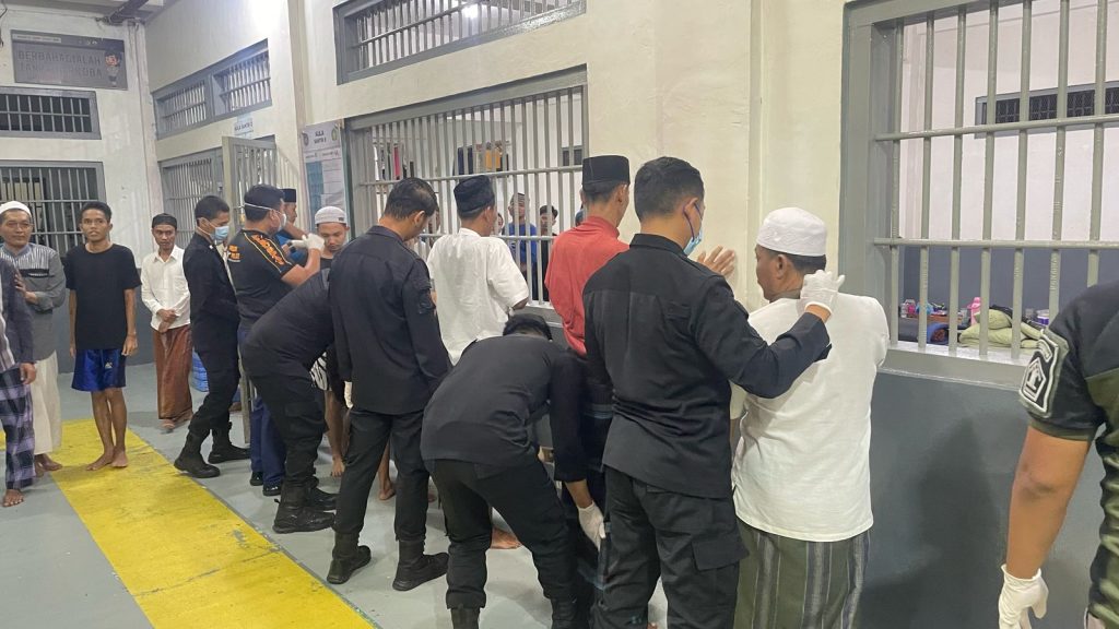 DelikAsia, (Cilegon) Dalam rangka mendukung pelaksanaan 13 Program Akselerasi Menteri Imigrasi dan Pemasyarakatan, Lembaga Pemasyarakatan Kelas IIA Cilegon menggelar kegiatan penggeledahan insidentil pada Minggu malam (6/4). Kegiatan ini merupakan bentuk implementasi nyata komitmen jajaran pemasyarakatan dalam memberantas peredaran narkoba dan berbagai praktik penipuan di dalam lapas maupun rutan.