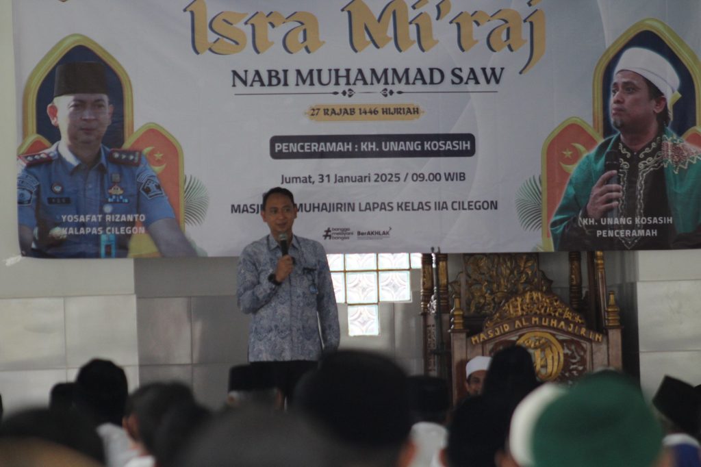 Kepala Lapas Kelas IIA Cilegon, Yosafat Rizanto, dalam sambutannya menyatakan bahwa acara ini merupakan bagian dari upaya berkelanjutan untuk memperkuat spiritualitas dan motivasi warga binaan. “Peringatan Isra Mi’raj ini tidak hanya sekadar syiar agama, tetapi juga sebagai sarana untuk membina mental dan spiritual warga binaan agar tetap menjaga iman dan taqwa,” ujar Yosafat.