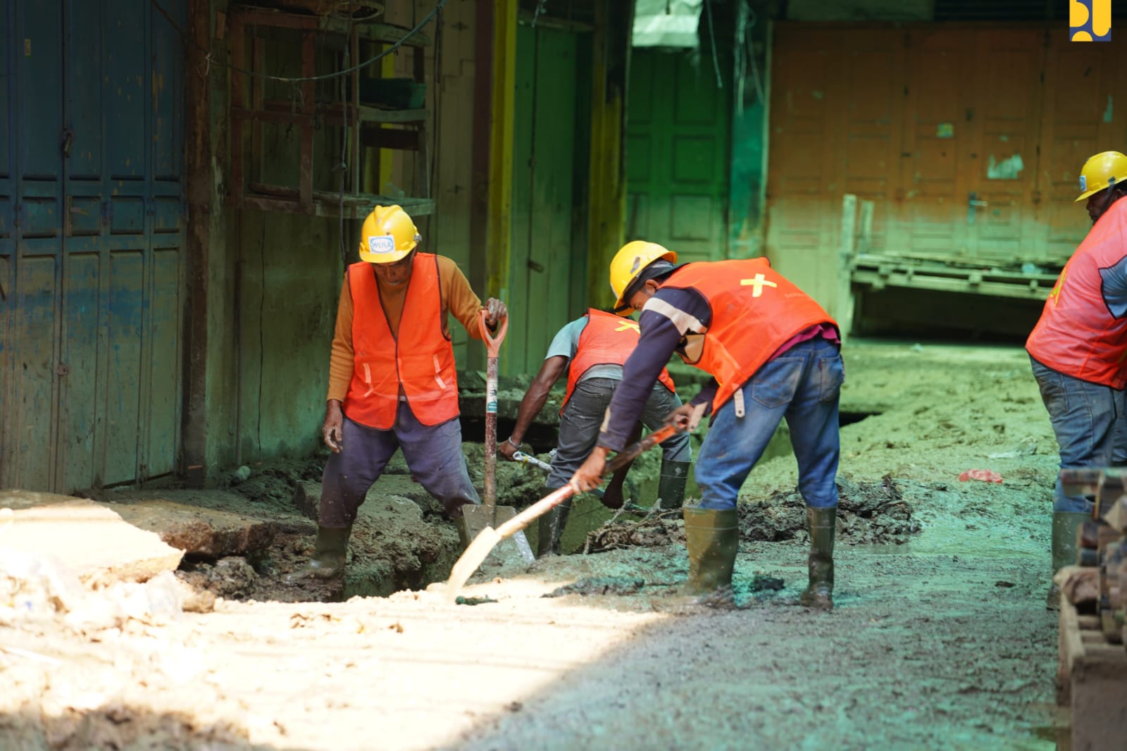 Di lokasi-lokasi yang sulit dijangkau alat berat, Kementerian PU mengoptimalkan pekerja padat karya dengan dukungan peralatan berukuran kecil, sehingga proses pembersihan tetap efektif dan mampu menjangkau seluruh area terdampak hingga ke permukiman dan fasilitas umum.