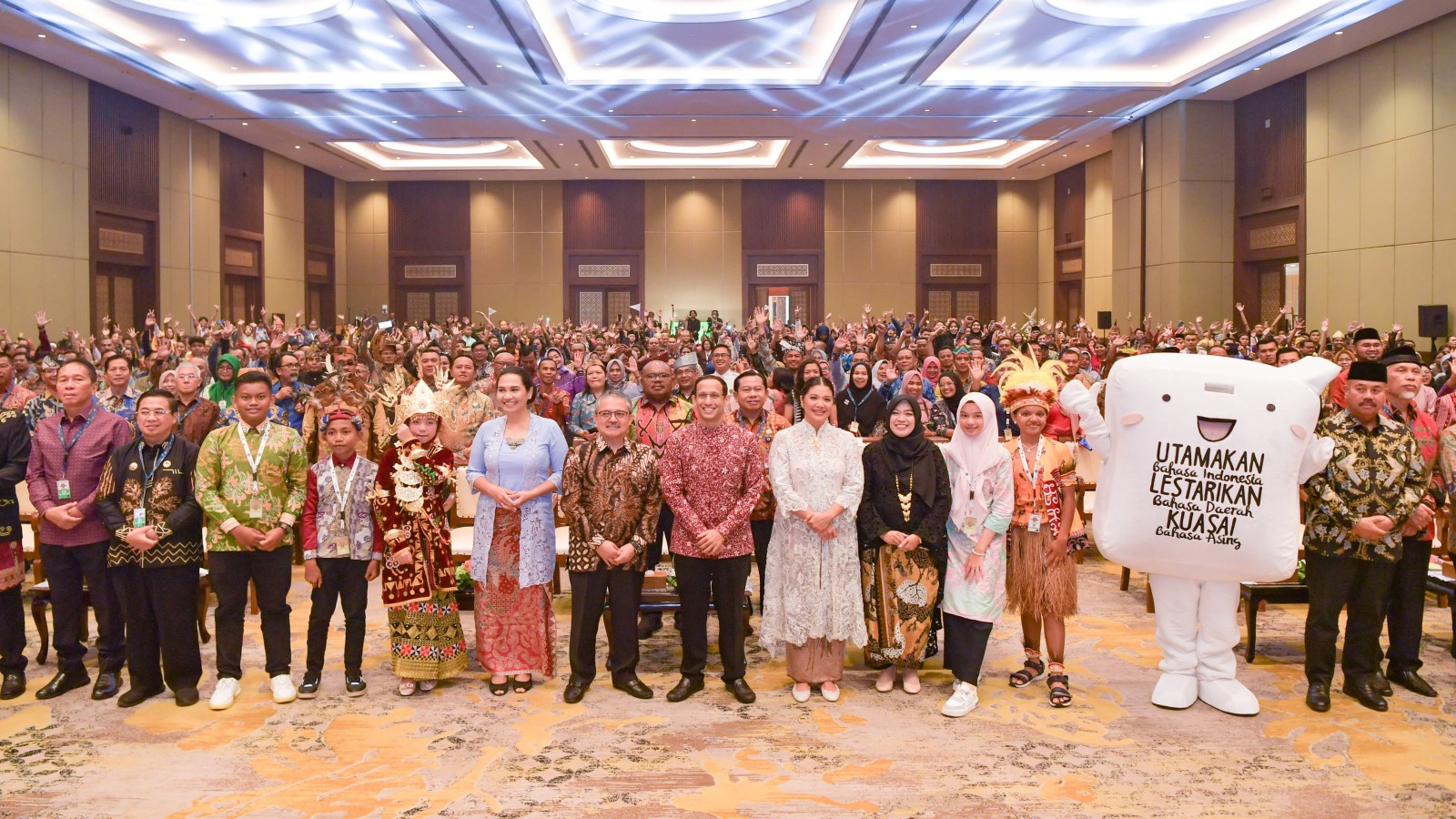DelikAsia.com, (Jakarta) | Rona bahagia terpancar dari wajah Menteri Pendidikan, Kebudayaan, Riset, dan Teknologi (Mendikbudristek), Nadiem Anwar Makarim, beserta jajaran pejabat di lingkungan Kementerian Pendidikan, Kebudayaan, Riset, dan Teknologi (Kemendikbudristek) ketika menyaksikan penampilan pembuka dari perwakilan para peserta Festival Tunas Bahasa Ibu Nasional (FTBIN) Tahun 2024.