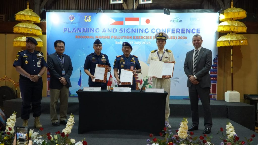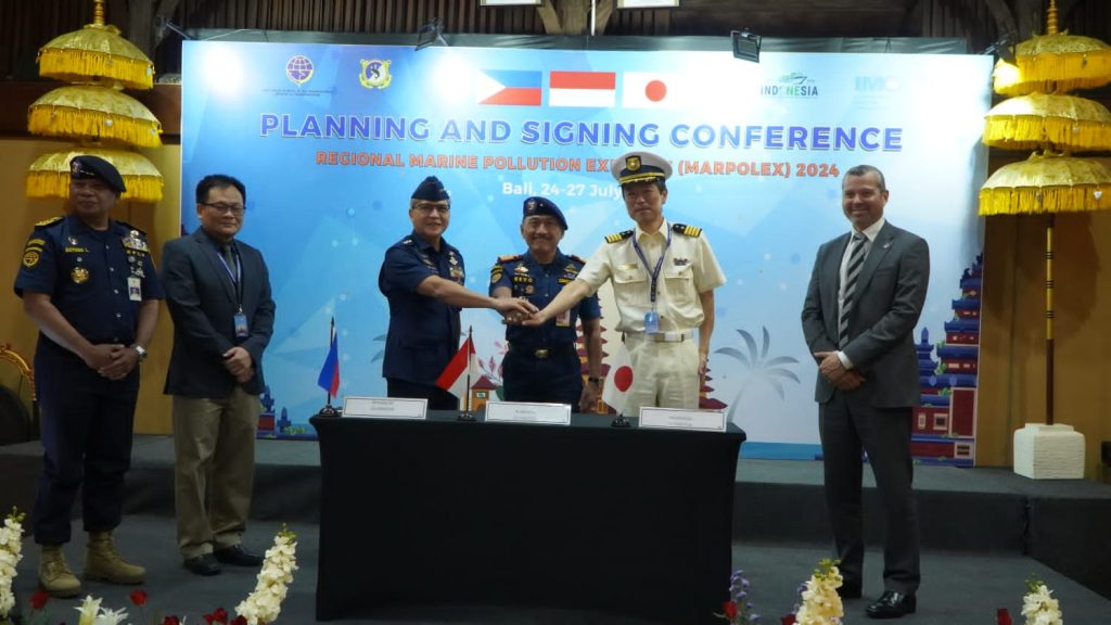 Bali, (DelikAsia.com) | Kementerian Perhubungan melalui Direktorat Kesatuan Penjagaan Laut dan Pantai (KPLP) Ditjen Perhubungan Laut bersama dengan Penjaga Pantai Filipina (Philippines Coast Guard) dan Penjaga Pantai Jepang (Japan Coast Guard) menandatangani dokumen latihan bersama penanggulangan pencemaran minyak di laut yang dikenal dengan sebutan Regional Marine Pollution Exercise (Marpolex) yang akan dilaksanakan pada tahun 2024 di Bacolod, Filipina.