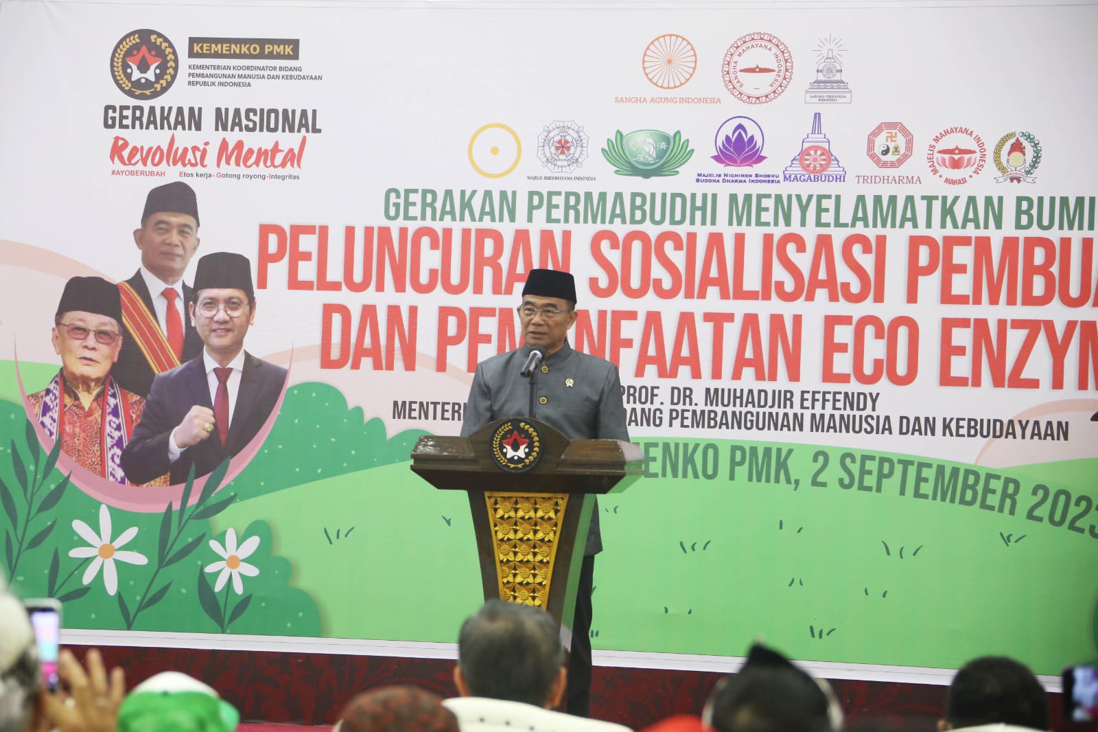 Hal itu disampaikan saat memberikan sambutan dalam acara “Peluncuran Sosialisasi Pembuatan dan Pemanfaatan Eco-Enzyme” bertajuk “Gerakan Permabudhi Menyelamatkan Bumi” yang diselenggarakan oleh Persatuan Umat Buddha Indonesia (Permabudhi) bekerja sama dengan Kemenko PMK di Aula Heritage Kemenko PMK, pada Sabtu (2/9).