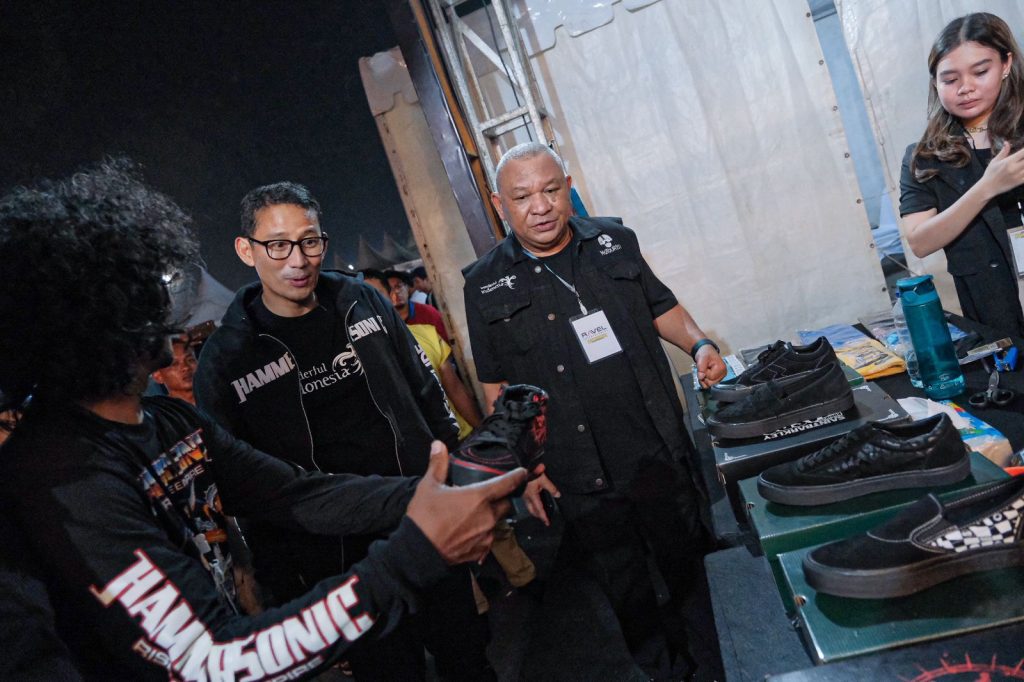 Dalam kesempatan tersebut, Menparekraf Sandiaga didampingi Deputi Bidang Produk Wisata dan Penyelenggara Kegiatan (Events) Kemenparekraf/Baparekraf, Vinsensius Jemadu; Direktur Event Nasional dan Internasional Kemenparekraf/Baparekraf, Dessy Ruhati; dan CEO Ravel Entertainment/Hammersonic, Ravel Donald Junardy, berkeliling ke sejumlah booth UMKM dan membeli produk-produk yang ditawarkan.