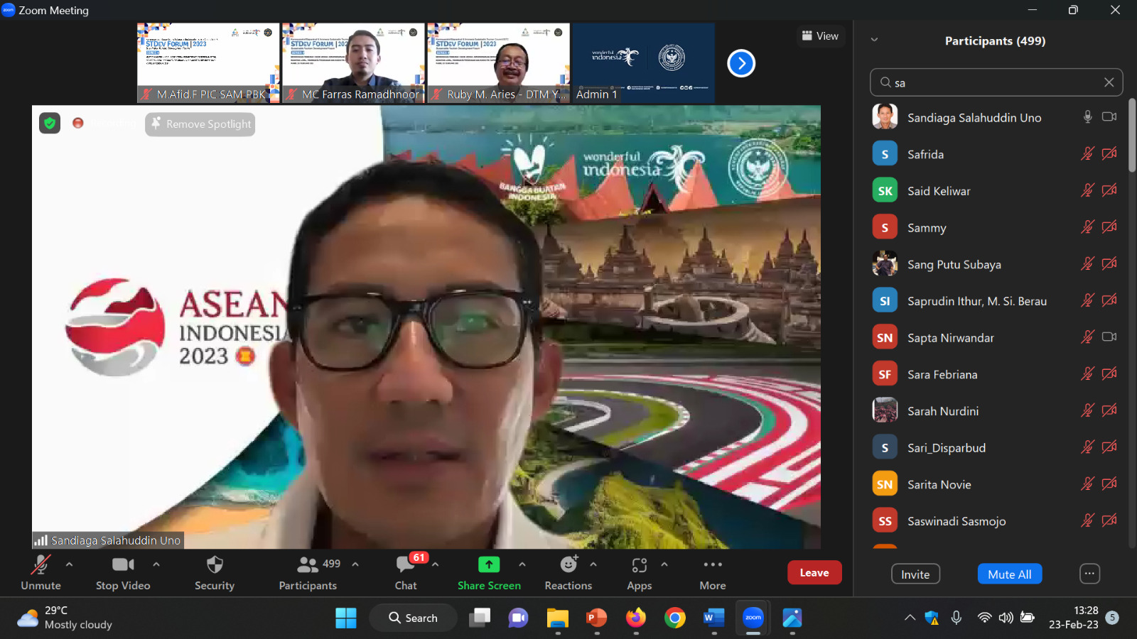 Menparekraf Sandiaga dalam webinar STDEV Series I dengan tema ‘‘Mewariskan Pemikiran I Gede Ardika: Kepariwisataan Berkelanjutan, Kearifan Lokal, Pariwisata Pedesaan dan Kode Etik Kepariwisataan‘‘ yang berlangsung secara hybrid, di Jakarta, Kamis (23/2/2023), mengatakan, hal tersebut sejalan dengan pemikiran strategis yang dilahirkan I Gede Ardika. Salah seorang tokoh pariwisata inspiratif yang telah melahirkan sejumlah gagasan baru dalam pengembangan industri parekraf.