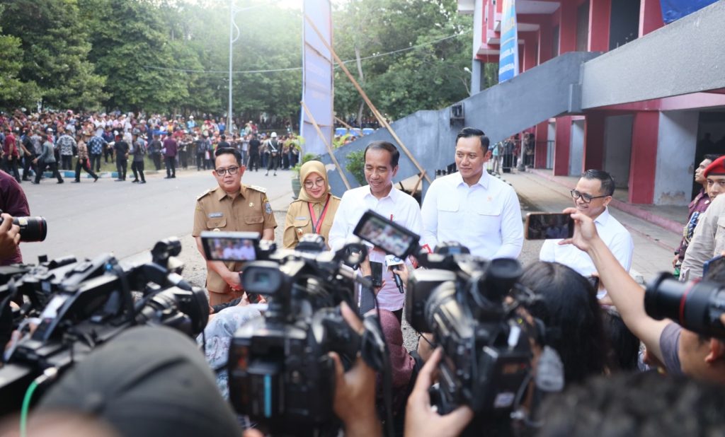 DelikAsia.com, (Banyuwangi) | Presiden Republik Indonesia (RI), Joko Widodo didampingi Menteri Agraria dan Tata Ruang/Kepala Badan Pertanahan Nasional (ATR/BPN), Agus Harimurti Yudhoyono (AHY) menyerahkan 10.323 sertipikat hasil Redistribusi Tanah yang diperuntukkan untuk bangunan permukiman. Sebanyak 5.000 perwakilan penerima sertipikat memenuhi lokasi penyerahan, yaitu Gedung Olahraga (GOR) Tawang Alun di Kabupaten Banyuwangi pada Selasa (30/04/2024).