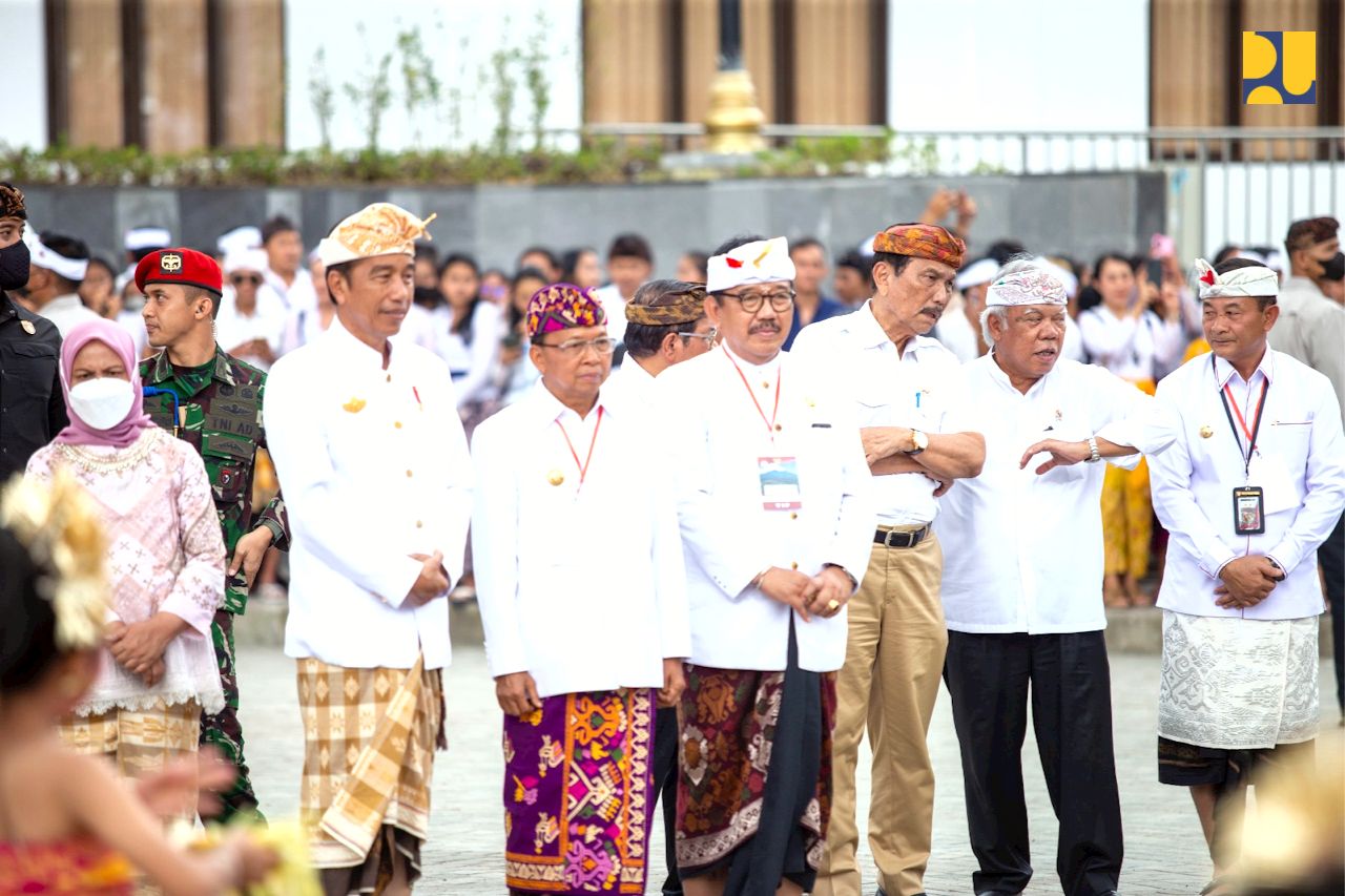 Bali, (DelikAsia.com) | Menteri Pekerjaan Umum dan Perumahan Rakyat (PUPR) Basuki Hadimuljono mendampingi Presiden Joko Widodo, Menteri Koordinator Bidang Kemaritiman dan Investasi Luhut B. Pandjaitan, Sekretaris Kabinet Pramono Anung, dan Gubernur Bali I Wayan Koster meresmikan Penataan Kawasan Suci Pura Besakih di Kecamatan Rendang, Karangasem, Bali, Senin (13/03).