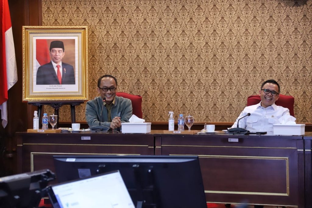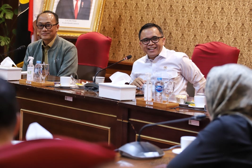 saat memimpin rapat bersama Dirjen Dukcapil Kementerian Dalam Negeri Zudan Arif Fakrulloh, di Jakarta, Selasa (3/1/2023).