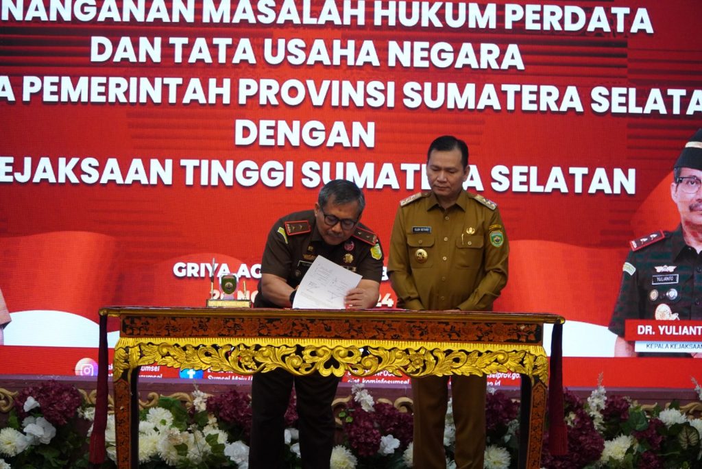 Acara yang berlangsung di Griya Agung, Palembang, ini dihadiri jajaran Kejati Sumsel serta pejabat Pemprov Sumsel. MoU tersebut bertujuan meningkatkan sinergi dalam penegakan hukum, keamanan, pelayanan publik, dan penyelesaian sengketa hukum yang menyangkut kepentingan publik.