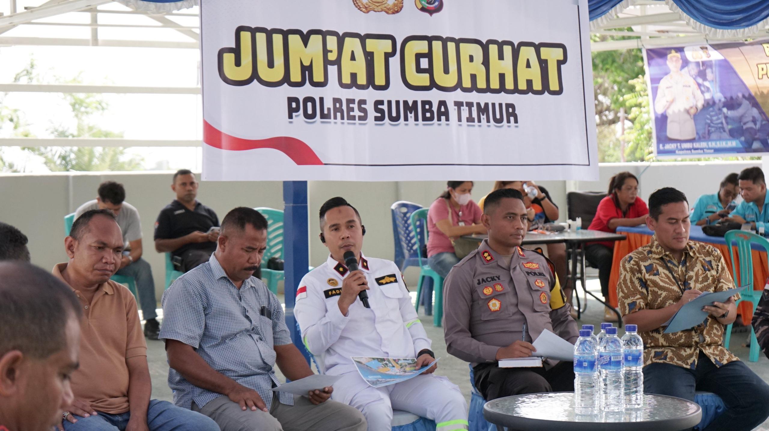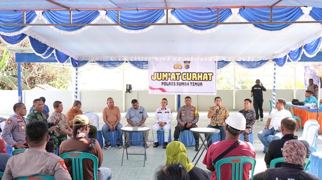 DelikAsia.com, (Waingapu) | Direktorat Jenderal Perhubungan Laut Kementerian Perhubungan, melalui Kantor Kesyahbandaran dan Otoritas Pelabuhan (KSOP) Kelas IV Waingapu, menggelar acara Jumat Curhat untuk mendengarkan aspirasi dan keluhan masyarakat di kawasan pelabuhan. Acara ini dihadiri oleh Kapolres Sumba Timur AKBP E. Jacky Umbu Kaledi, Kepala Kantor KSOP Waingapu Fadly Afand Djafar, serta General Manager PT. Pelindo Anwar Siregar, dan berbagai perwakilan masyarakat.