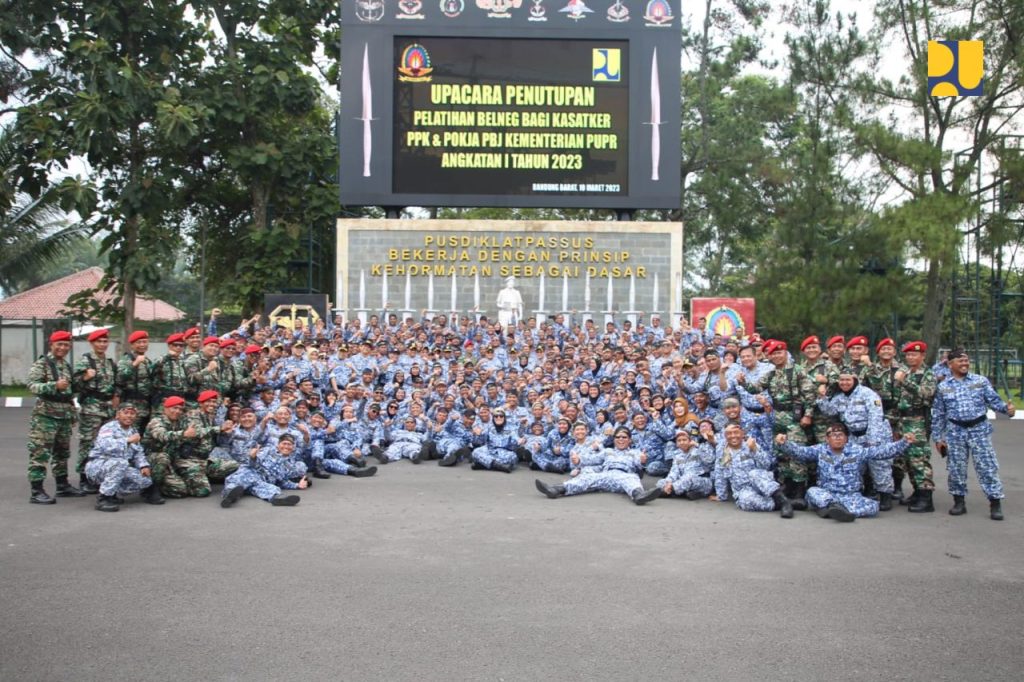Kepala BPSDM Khalawi AH yang hadir mewakili Menteri PUPR Basuki Hadimuljono dalam Kegiatan Penutupan Pelatihan Bela Negara bagi Kasatker, PPK, dan POKJA PBJ Tahun 2023 Angkatan I di Pusdiklatpassus, Batujajar, Bandung Barat, Jumat (10/3) mengatakan, pembangunan infrastruktur yang dilakukan Kementerian PUPR merupakan amanah dari negara yang harus dilaksanakan dengan baik, akuntabel dan transparan.