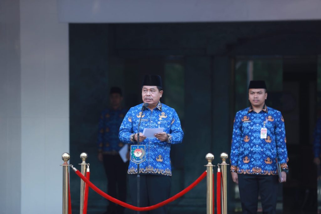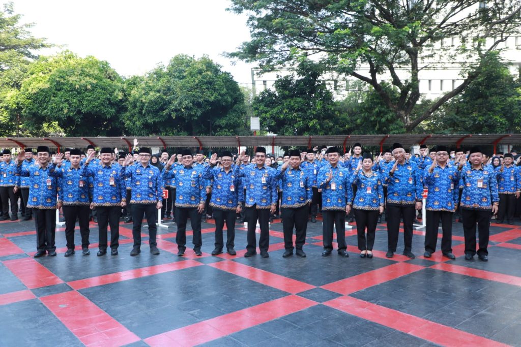 Jakarta, (DelikAsia.com) | Sekretaris Jenderal (Sekjen) Kementerian Dalam Negeri (Kemendagri) Suhajar Diantoro memimpin Upacara Peringatan Hari Lahir Pancasila di Halaman Plaza Gedung A Kantor Pusat Kemendagri, Jakarta Pusat, Kamis (1/6/2023). Dalam upacara tersebut Suhajar dan peserta upacara kompak mengenakan seragam Korps Pegawai Republik Indonesia (Korpri).