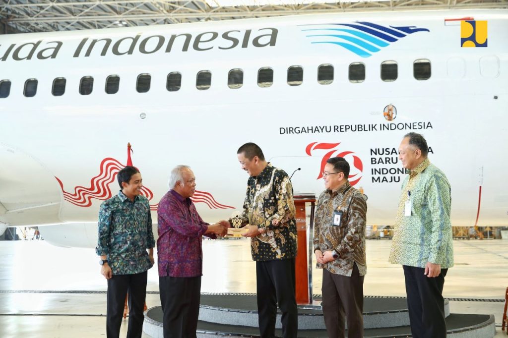 DelikAsia.com, (Tangerang) | Menteri Pekerjaan Umum dan Perumahan Rakyat (PUPR) sekaligus Plt Kepala Otorita IKN (OIKN) Basuki Hadimuljono bersama dengan Plt Wakil Kepala OIKN Raja Juli Antoni menjalin kerjasama antara OIKN dengan PT Garuda Indonesia (Persero) Tbk sebagai official airlines dalam pelaksanaan HUT ke-79 RI di IKN. Perjanjian tersebut dilaksanakan di Hanggar 2 GMF AeroAsia, Jumat (26/7/2024), dan disaksikan oleh jajaran inti OIKN dan PT Garuda Indonesia.