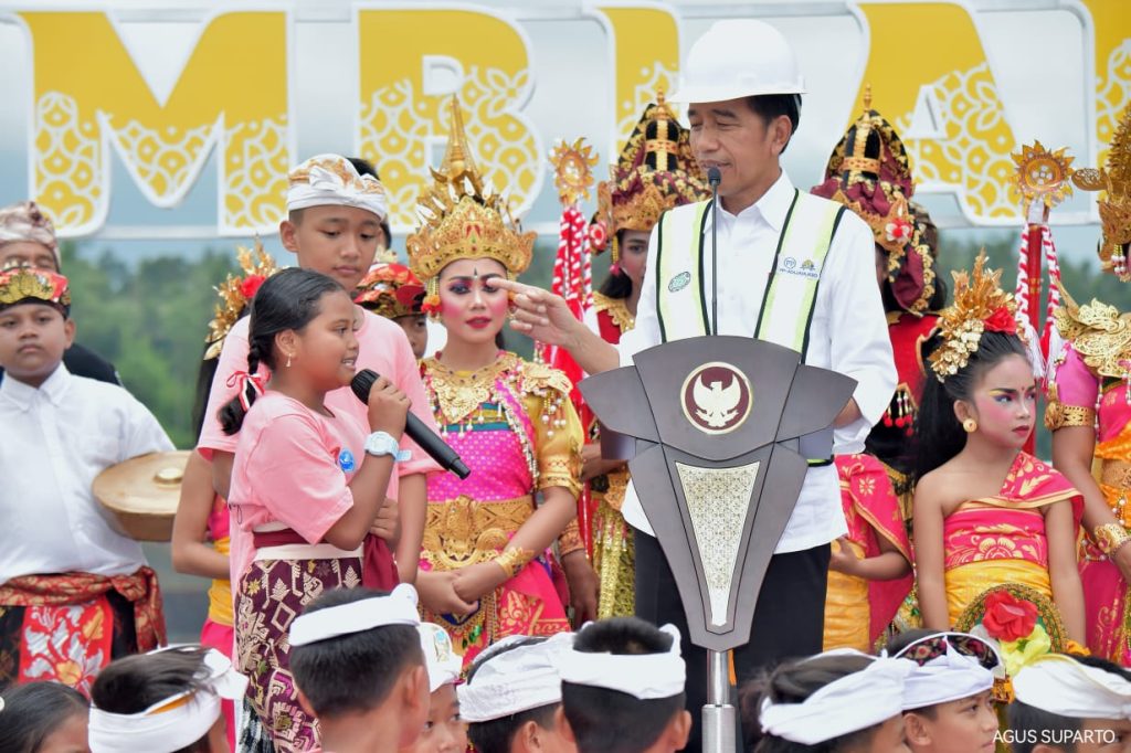 Bali, (DelikAsia.com) | Presiden Joko Widodo (Jokowi) bersama siswa/siswi SD/SMP/SMA di Buleleng didampingi Menteri Pekerjaan Umum dan Perumahan Rakyat (PUPR) Basuki Hadimuljono meresmikan Bendungan Tamblang di Kabupaten Buleleng, Provinsi Bali, Kamis (2/2/2023). Bendungan Tamblang secara resmi diusulkan oleh Gubernur Bali Wayan Koster untuk berubah nama menjadi Bendungan Danu Kerthi dengan harapan bendungan ini menjadi infrastruktur yang dapat menjaga keberlanjutan sumber air di Kabupaten Buleleng.