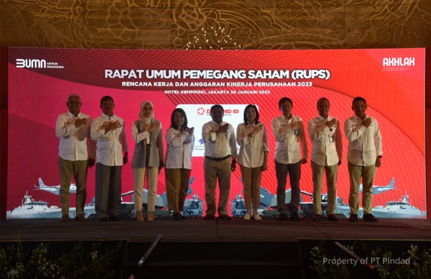Sumber dan Foto: BUMN.GO.ID DelikAsia.com, (Jakarta),–PT Pindad melaksanakan Rapat Umum Pemegang Saham (RUPS) pengesahan Rencana Kerja dan Anggaran Perusahaan (RKAP) bersama induk holding industri pertahanan DEFEND ID, PT Len Industri (Persero) serta anggota lainnya yakni PT DI, PT Dahana dan PT Pal Indonesia pada Senin, 30 Januari 2023 di Hotel Indonesia Kempinski, Jakarta. Acara dihadiri oleh Asisten Deputi Bidang Industri Manufaktur Liliek Mayasari, jajaran Direksi serta Komisaris anggota DEFEND ID.