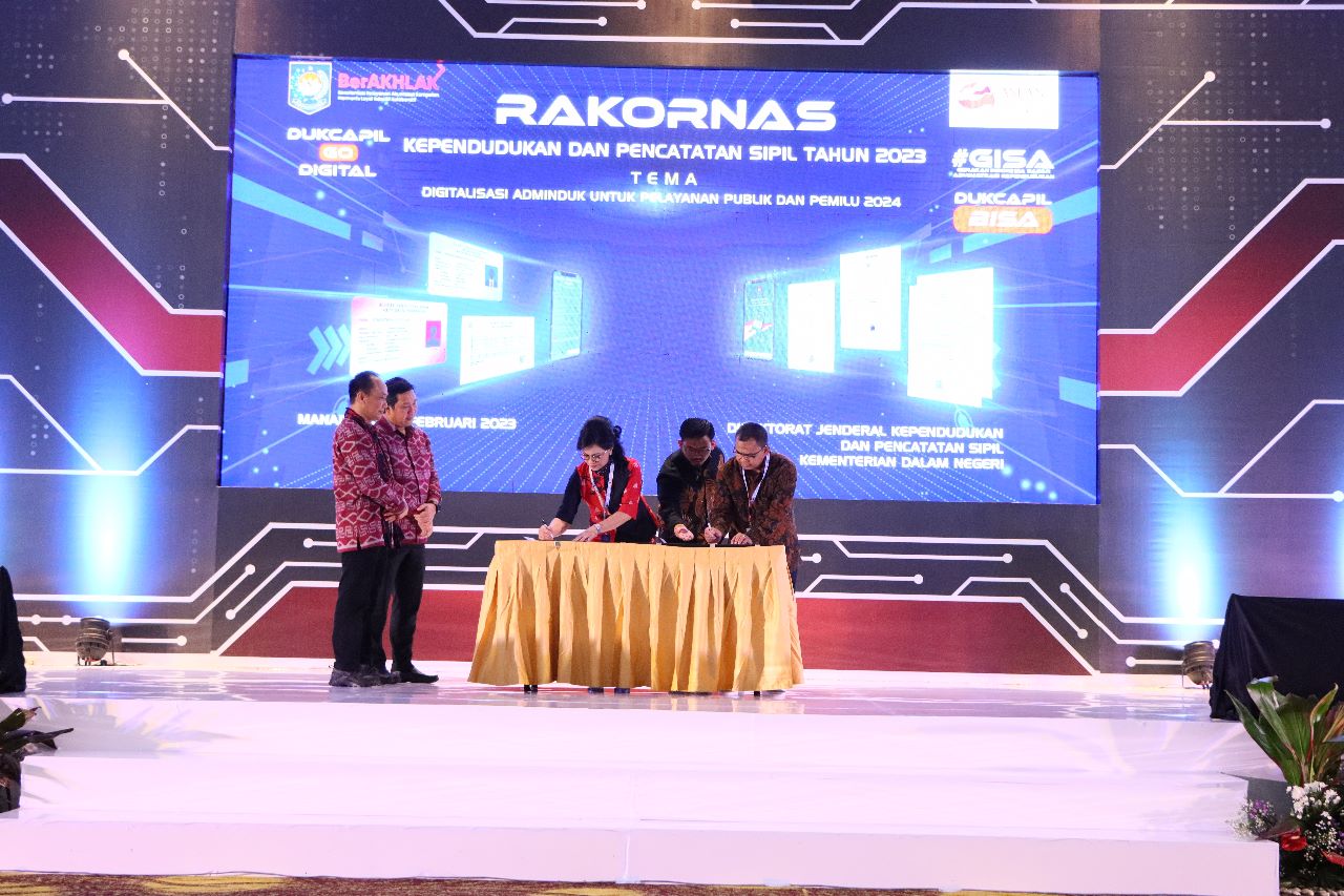 Manado, (DelikAsia.com) | Direktorat Jenderal Kependudukan dan Pencatatan Sipil (Ditjen Dukcapil) Kementerian Dalam Negeri (Kemendagri) kembali menggelar Rapat Koordinasi Nasional (Rakornas). Rakornas adalah agenda tahunan, kali ini bertajuk “Digitalisasi Adminduk untuk Kemudahan Layanan Publik dan Pemilu 2024”, dan berlangsung di Novotel Manado Golf Resort & Convention Center, Kairagi II, Sulawesi Utara, 8-10 Februari 2023.