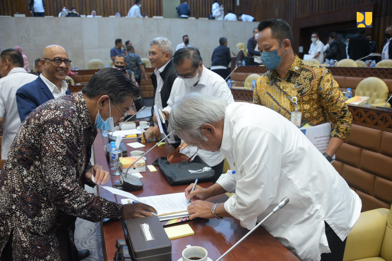 Turut hadir mendampingi Menteri PUPR, Sekretaris Jenderal Kementerian PUPR Mohammad Zainal Fatah, Inspektur Jenderal T. Iskandar, Dirjen Bina Marga Hedy Rahadian, Dirjen Sumber Daya Air Jarot Widyoko, Dirjen Bina Konstruksi Kementerian PUPR Yudha Mediawan, Dirjen Cipta Karya Diana Kusumastuti, Dirjen Perumahan Iwan Suprijanto, Dirjen Pembiayaan Infrastruktur PUPR Herry Trisaputra Zuna, Kepala BPSDM Khalawi Abdul Hamid, Kepala BPIW Rachman Arief Dienaputra, Staf Ahli Menteri Bidang Teknologi, Industri, dan Lingkungan Endra S. Atmawidjaja, Staf Ahli Menteri Bidang Hubungan Antar Lembaga Asep Arafah Permana, dan Kepala BPJT Danang Parikesit. (sfr).