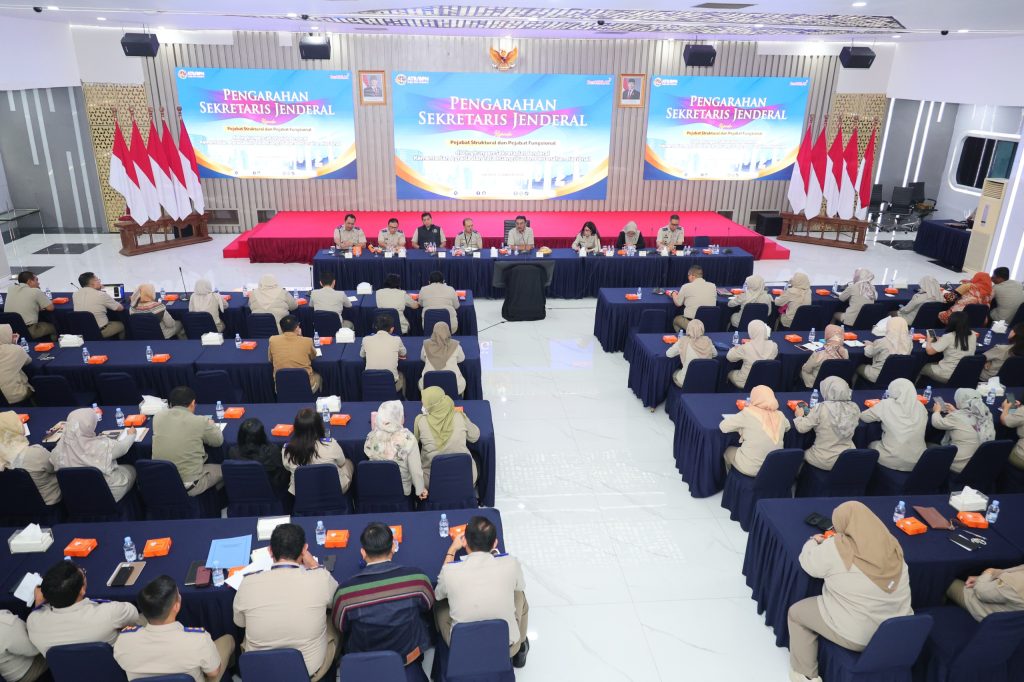 Caption: Sekretaris Jenderal ATR/BPN Dalu Agung Darmawan saat memimpin rapat internal dan memberikan arahan kepada jajaran pejabat struktural serta fungsional di Aula Prona Kementerian ATR/BPN, Jakarta, Senin (5/1/2026). Jakarta, (Delik Asia) | Menyongsong pelaksanaan program kerja tahun 2026, Sekretariat Jenderal (Setjen) Kementerian Agraria dan Tata Ruang/Badan Pertanahan Nasional (ATR/BPN) menggelar kegiatan Pengarahan Sekretaris Jenderal (Sekjen) bagi Pejabat Struktural dan Fungsional di lingkungan Setjen. Dalam kesempatan tersebut, Sekjen Kementerian ATR/BPN, Dalu Agung Darmawan, mengajak seluruh jajaran untuk memperkuat kerja sama lintas biro demi mendukung pelaksanaan program kementerian secara optimal.