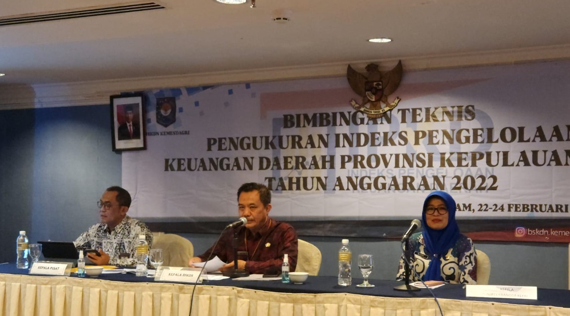 Batam, (DelikAsia.com) | Kepala Badan Strategi Kebijakan Dalam Negeri (BSKDN) Kementerian Dalam Negeri (Kemendagri) Yusharto Huntoyungo menyampaikan hasil pengukuran Indeks Pengelolaan Keuangan Daerah (IPKD) Tahun Anggaran 2021. Yusharto meminta pemerintah daerah (Pemda) terus memperhatikan penginputan data dalam aplikasi IPKD sesuai ketentuan.