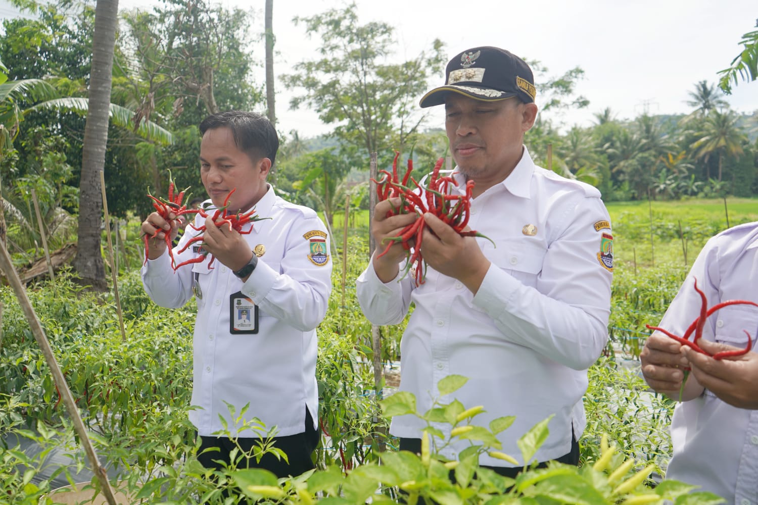 Sanuji Pentamarta Wakil Wali Kota Cilegon (tengah) sewaktu melihat langsung Kawasan Agrowisata saat panen cabai di Kecamatan Purwakarta. DelikAsia.com, (Cilegon),–Kecamatan Purwakarta, Kota Cilegon, didorong untuk menjadi kawasan agrowisata atau wisata berbasis pertanian.
