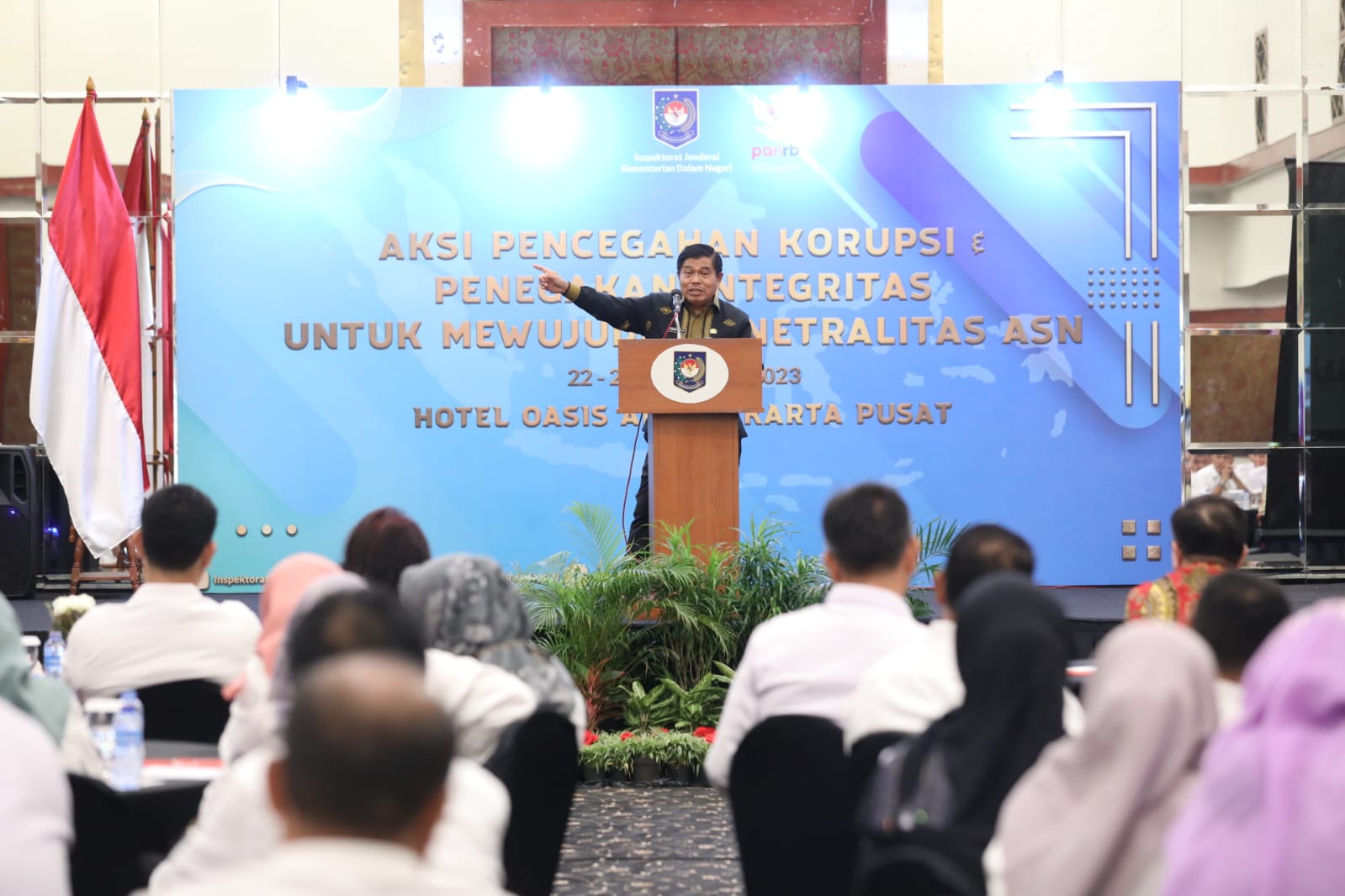 Jakarta, (DelikAsia.com) | Sekretaris Jenderal (Sekjen) Kementerian Dalam Negeri (Kemendagri) Suhajar Diantoro meminta Aparatur Sipil Negara (ASN) menjalankan fungsi pemerintahan. Hal itu disampaikannya saat memberi arahan sekaligus membuka acara Silaturahmi Nasional Institut Ilmu Pemerintahan (IIP) Angkatan XXV bertajuk “Aksi Pencegahan Korupsi & Penegakan Integritas untuk Mewujudkan Netralitas ASN”, di Hotel Oasis Amir Jakarta, Rabu (22/2/2023).