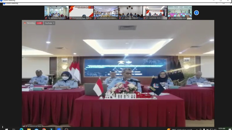 Terpusat dari Auditorium Lantai 6 Gedung Itjen Kemenkumham, Kegiatan diikuti oleh jajaran Unit Utama, Kantor Wilayah dan UPT di lingkungan Kementerian Hukum dan HAM secara daring melalui Aplikasi Zoom Meeting. Di Kanwil Kemenkumham Banten, kegiatan diikuti oleh Kepala Bagian Program dan Humas, Agus Suryana beserta jajaran.[Red/Hms]