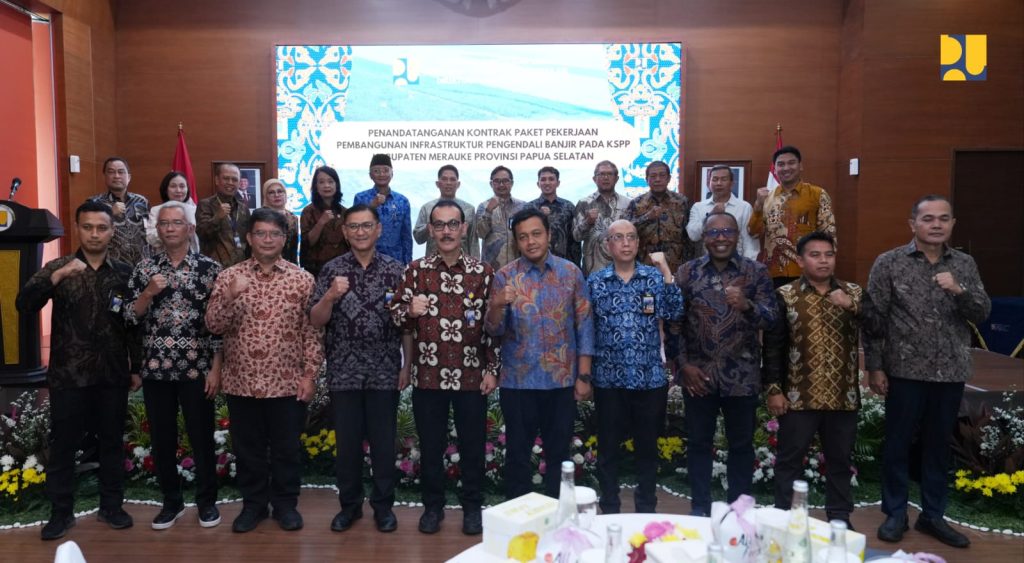 Jakarta, (Delik Asia) | Kementerian Pekerjaan (PU) melaksanakan penandatanganan kontrak untuk pekerjaan pengendalian banjir di Kawasan Sentra Produksi Pangan (KSPP) Kabupaten Merauke pada Jumat (21/11/2025) sebagai bentuk komitmen pemerintah dalam memperkuat ketahanan pangan nasional melalui penyediaan infrastruktur pengendalian banjir yang andal. Penandatanganan kontrak disaksikan langsung oleh Menteri PU Dody Hanggodo.