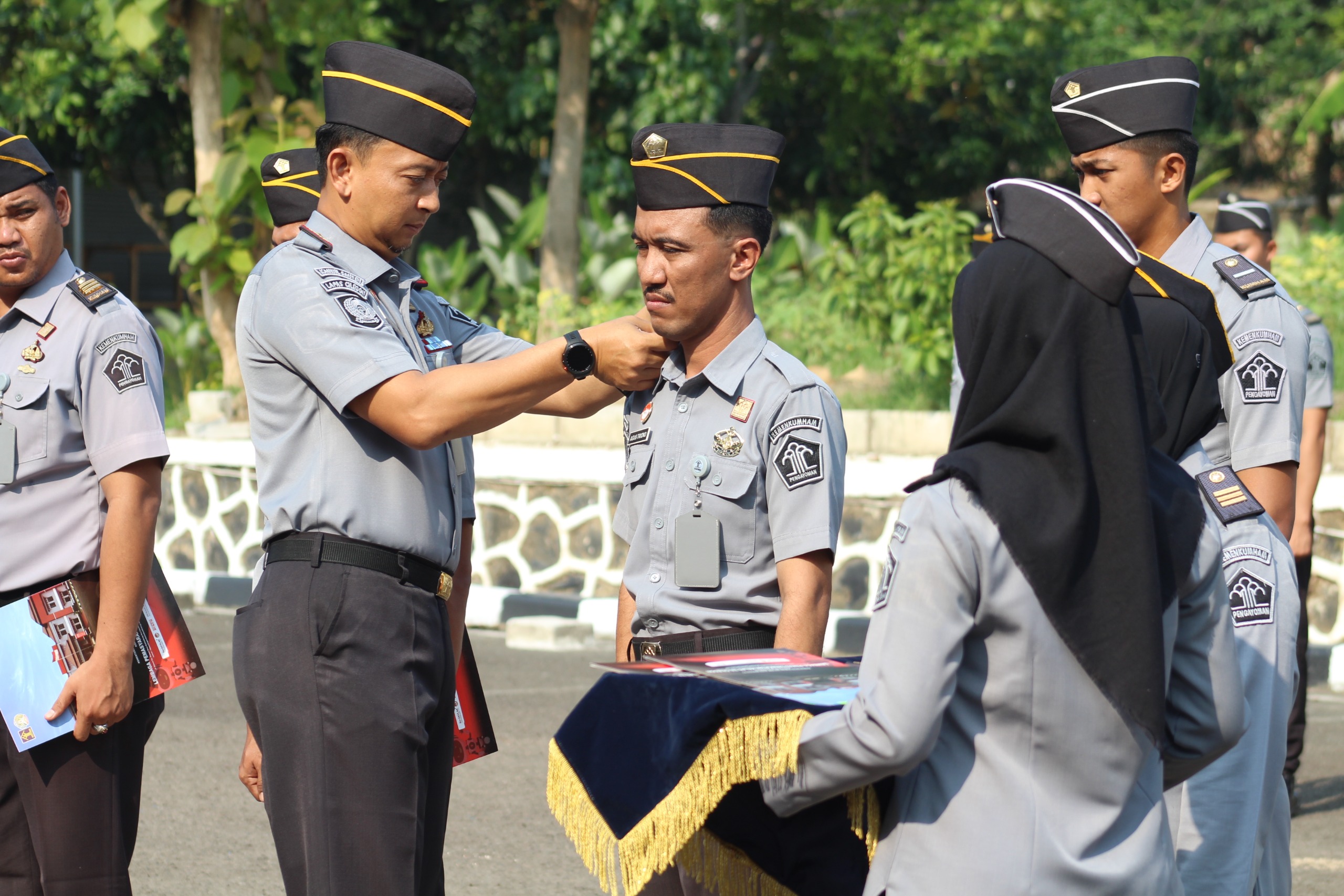 Dokumentasi : Kepala Lapas Yosafat Rizanto dan seluruh jajaran pegawai melaksanakan upacara kenaikan pangkat pada Senin (07/10). Acara yang berlangsung di halaman utama Lapas ini memberikan penghargaan kepada pegawai yang menunjukkan kinerja dan pengabdian yang baik. DelikAsia.com, (Cilegon) | Lembaga Pemasyarakatan Kelas IIA Cilegon melaksanakan upacara kenaikan pangkat bagi pegawai yang menunjukkan kinerja dan pengabdian yang baik. Acara ini diadakan di halaman utama Lapas dan dihadiri oleh Kepala Lapas Yosafat Rizanto serta seluruh jajaran pegawai, pada Senin (07/10).