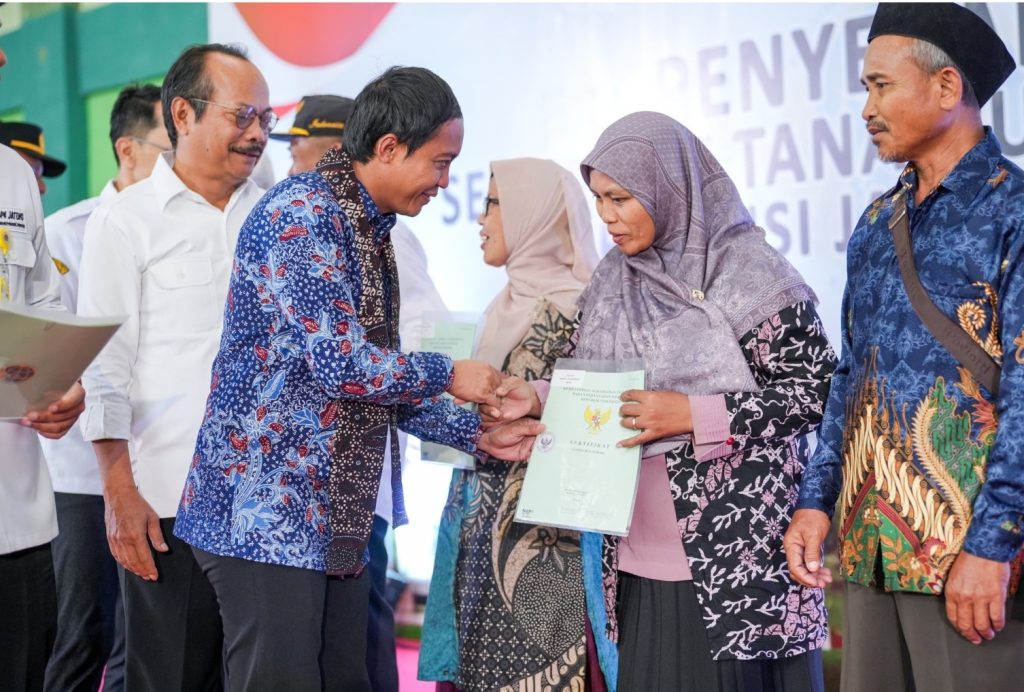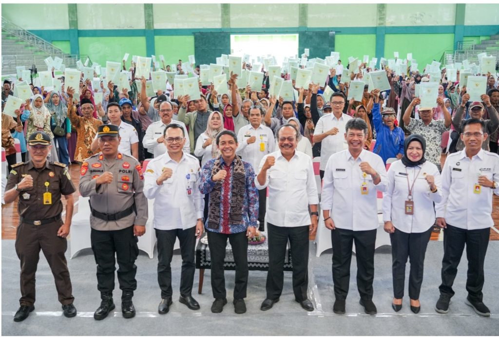 DelikAsia.com, (Tegal) | Wakil Menteri Agraria dan Tata Ruang/Wakil Kepala Badan Pertanahan Nasional (Wamen ATR/Waka BPN, Raja Juli Antoni menyerahkan 500 sertipikat hasil dari program Pendaftaran Tanah Sistematis Lengkap (PTSL), pada Rabu (20/12/2023). Para penerima sertipikat kali ini berasal dari tiga desa di Kabupaten Tegal, yaitu Desa Kebandingan, Tegalandong, dan Kambangan.