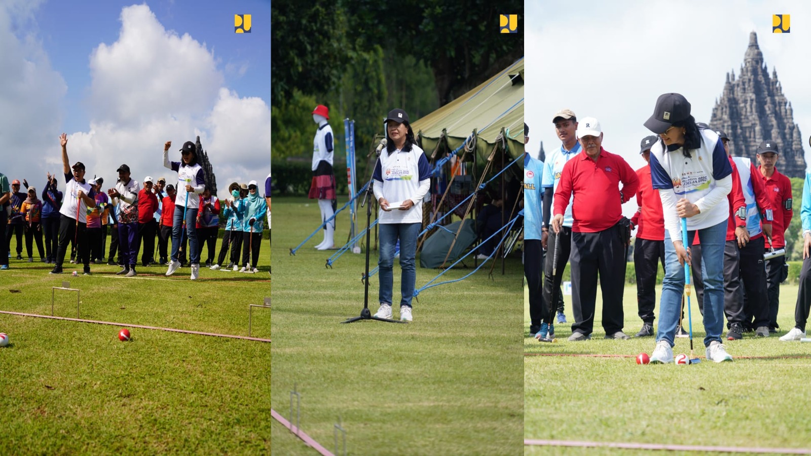 DelikAsia, (Yogyakarta) | Wakil Menteri Pekerjaan Umum Diana Kusumastuti yang juga Ketua Umum Pengurus Besar (PB) Persatuan Gateball Seluruh Indonesia (Pergatsi) secara resmi membuka turnamen terbuka Gateball Piala Walikota Jogja 2025 di Taman Wisata Candi Prambanan, Kabupaten Sleman, Daerah Istimewa Yogyakarta, Sabtu (10/5/2025). Pembukaan ditandai dengan pemukulan bola oleh Wamen PU didampingi Walikota Yogyakarta Hasto Wardoyo dan Ketua Pengurus Daerah Pergatsi DIY Gatot Saptadi.