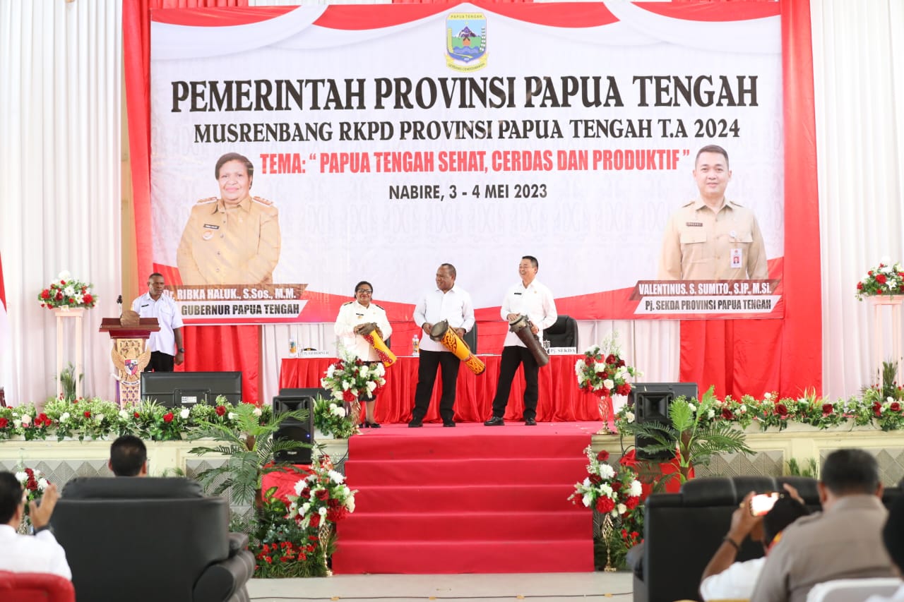 Nabire, (DelikAsia.com) | Wakil Menteri Dalam Negeri (Wamendagri) John Wempi Wetipo mengapresiasi Pemerintah Provinsi (pemprov) Papua Tengah dalam Musyawarah Perencanaan Pembangunan (Musrenbang) Rencana Kerja Pemerintah Daerah (RKPD) Tahun 2024 di Aula Gereja KSK Nabire, Rabu (3/5/2023).